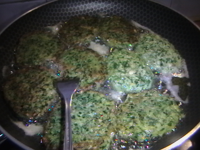 یک عدد سیب زمینی متوسط بهمراه یک عدد پیاز -رنده ی دنده ریز شده -همراه چهار عدد تخم مرغ و نمک و فلفل و زرد چوبه - به حبوبات ساییده شده اضافه می شود.