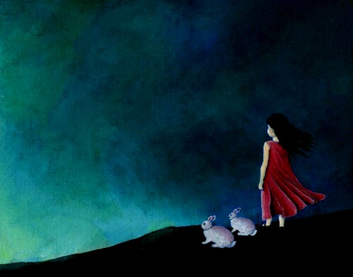.....(ماه از میان سرشاخه های سیب سرخ)