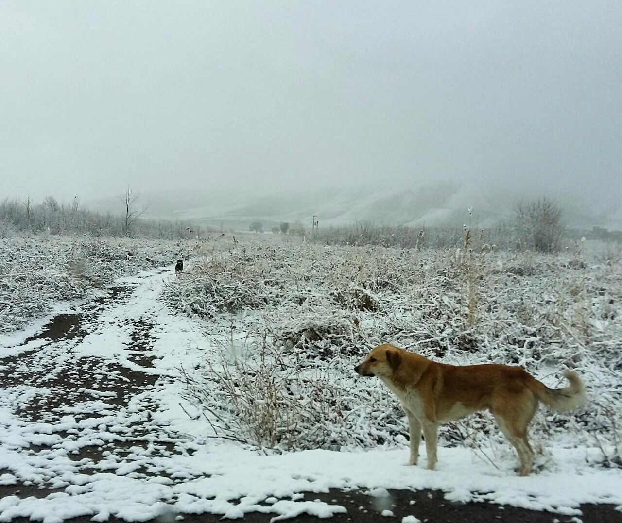 که برف آمدو شاخه های پر برف بید یه طرف،